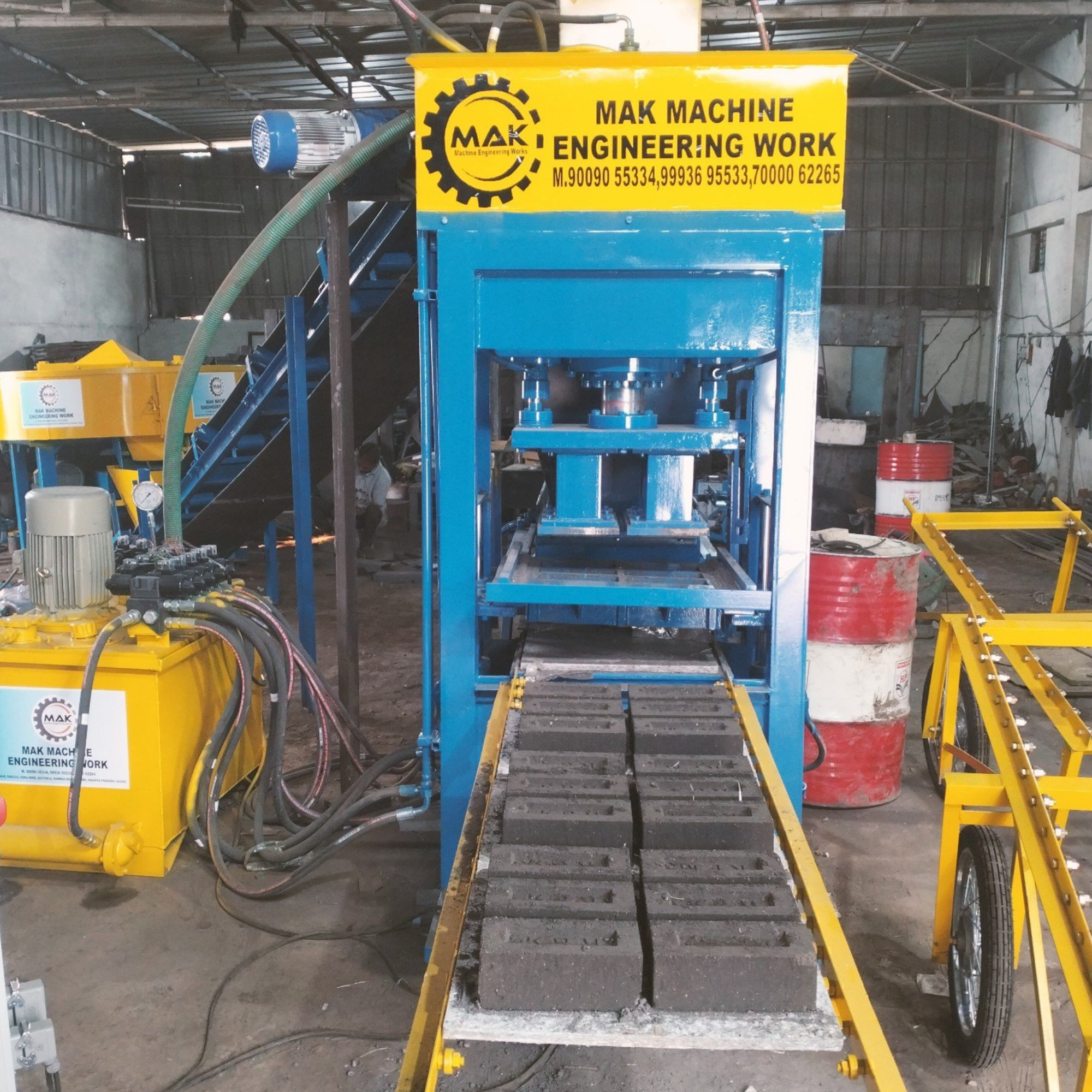 welcome to mak machine engineering works Indore I'm manufacturering of fly ash bricks making machine and paver block making machine available in Indore automatic Sami automatic machine available in Indore Madhya Pradesh India mo.9993695533.9009055334